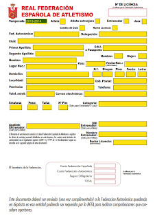 b) Para los nuevos atletas que van a solicitar por primera vez su licencia federativa nacional tendrán que descargar y rellenar el formulario que hay en la siguiente dirección de la RFEA: